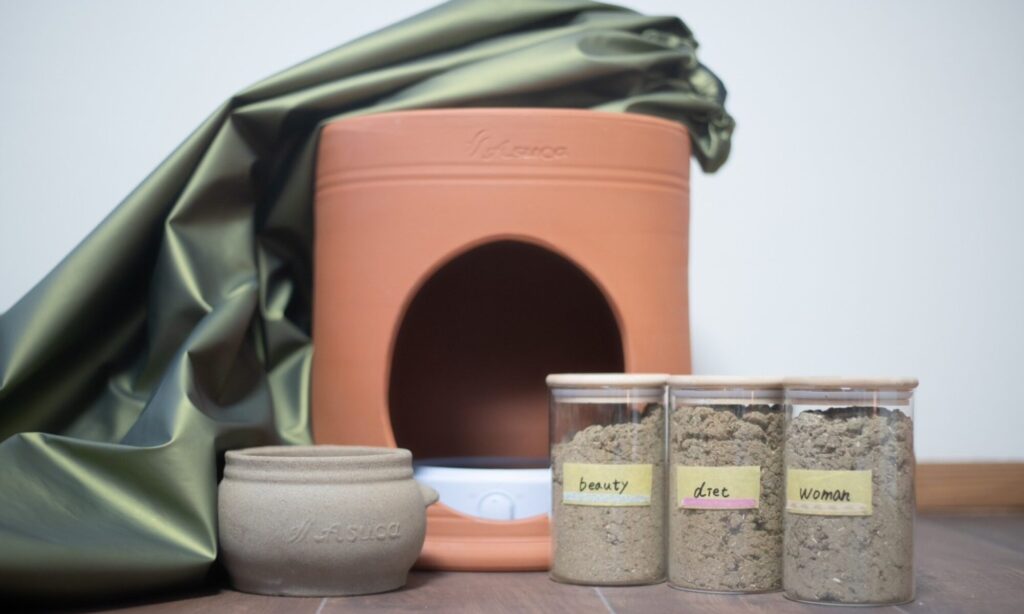 1つ1つ手作りでつくられる100%黄土座器と無農薬漢方よもぎ使用